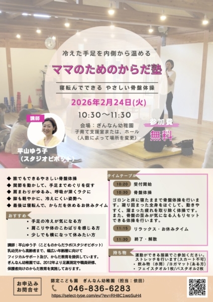 2月24日(火)「ママのためのからだ塾」を開催いたします。